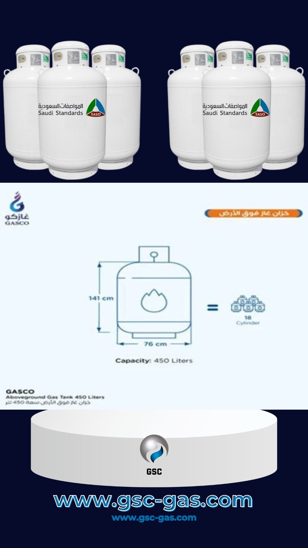 خزان غاز بسعة 450 لتر فوق سطح الأرض